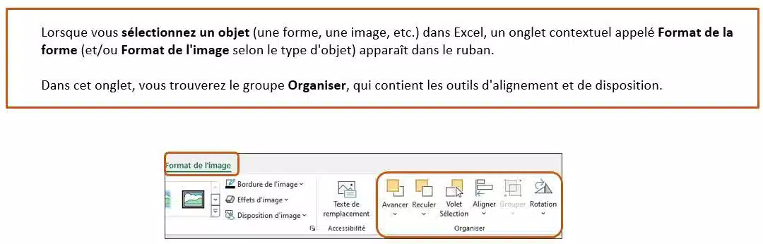 Ces outils vous permettent de positionner précisément des formes, des images, des zones de texte et d'autres objets graphiques sur votre feuille de calcul Excel. Ils offrent un contrôle précis sur l'apparence de vos présentations, garantissant un aspect professionnel et soigné.